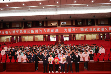 在主持人热情洋溢的介绍后,同学们为三位冠军献上鲜花表达崇高的敬意。随后三位冠军分别围绕着自身经历与内心感受,与同学们展开分享。首先,杨胜超介绍了自己在国内外体操赛事中的拼搏历程,分享了众多比赛经验,他强调了日常训练的科学规划与坚持的重要性。其次,张果围绕自身赛事夺冠经历,讲述了面对压力与挑战时的心理调适,以及日常高强度训练的自我管理。他表示每一次胜利都源于无数次重复训练和坚定信念,极大的鼓舞了在座的每一名同学。最后,张亮分享了拳击训练体系构建、实战战术运用,并以自身经验鼓励大家在体育道路上不断学习、提升专业素养。