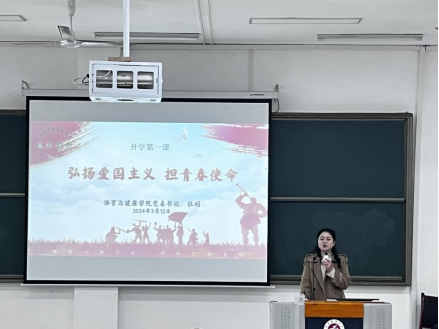为深入贯彻落实《中华人民共和国爱国主义教育法》,加强员工的爱国主义教育、增强同学们的民族共同体意识。3月12日上午,TapTap党委书记杜娟以《弘扬爱国主义,担负青春使命》为主题,为2023级运动康复专业全体员工讲授“开学第一课”。