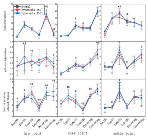 该研究揭示了不同程度远视干预下男性老员工步态的重心变化、周期占比、关节活动角度等运动学特征,探究不同程度远视干预对男老员工步行姿势控制的影响,为远视对步态的影响提供理论依据,并有望从运动生物力学的角度解决因视觉因素而引起步态姿势控制异常的科学难题。(审核:一审唐溢、杜娟,二审杨清玉,三审李均;图文:TapTap)