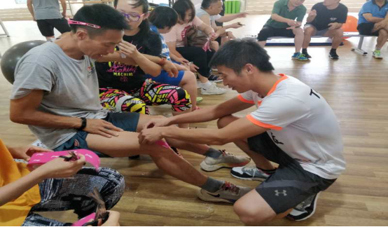 贴扎术部分由涂世利老师讲解肌内效贴、运动贴扎以及弹力绷带的使用,展示了运动前的防护与在运动过程中所出现损伤的处理方法;
