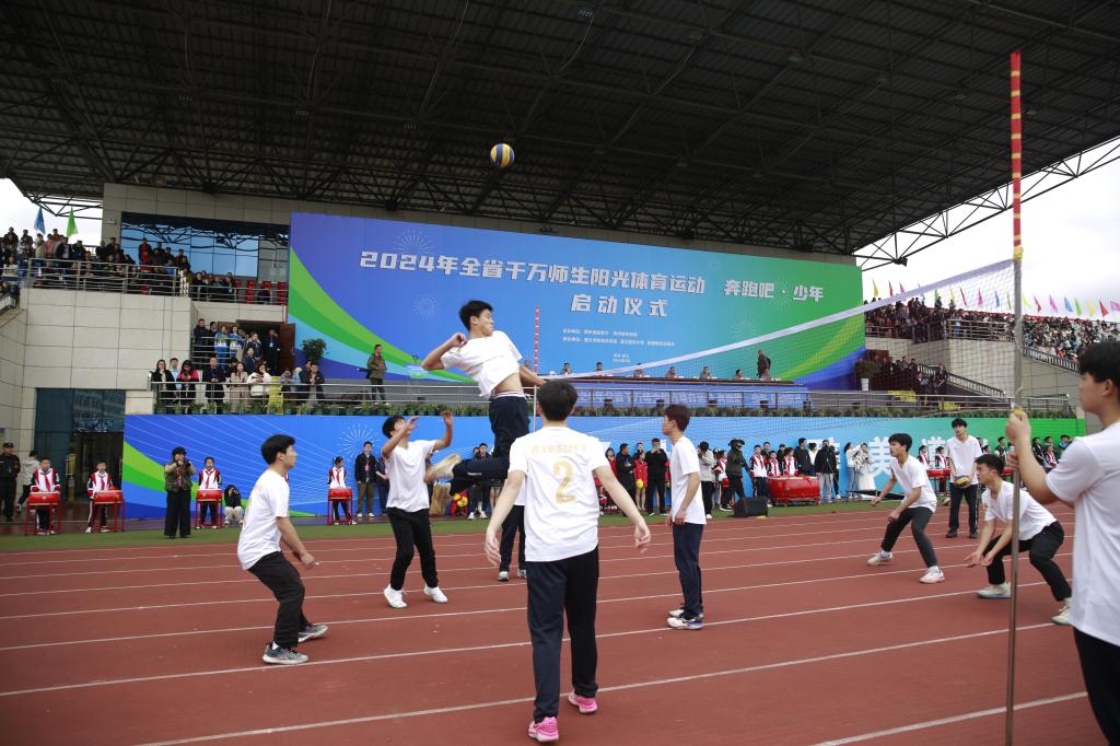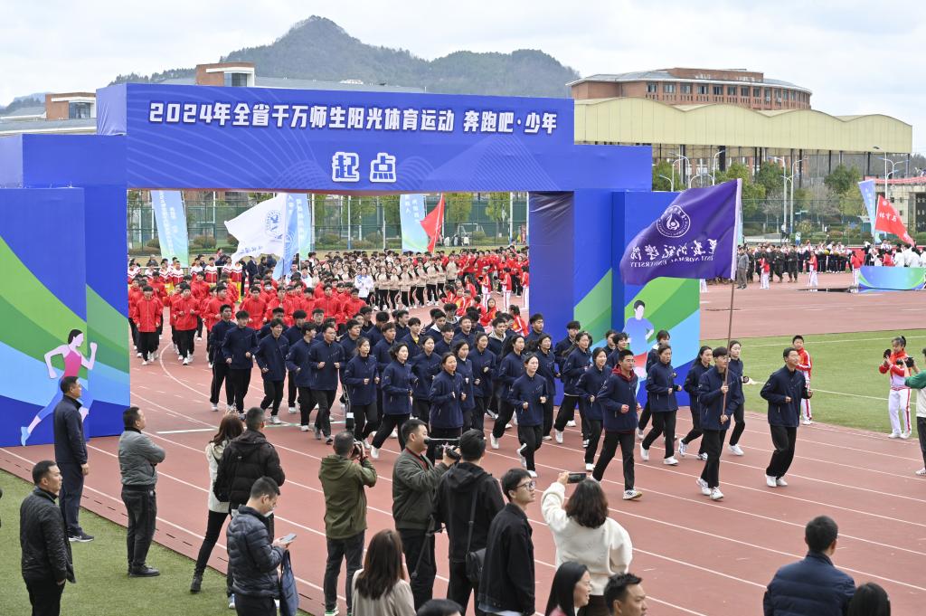启动仪式上,特色体育运动项目的精彩展演,点燃了师生们的运动热情。以“课间十分钟”为主题的滚铁环、跳皮筋、丢沙包、跳格子、乒乓球、羽毛球、网球等,展现出学子健康快乐、茁壮成长的精神面貌;翻腾飞舞的中国龙、强劲有力的中国鼓,行云流水的太极、蔑鸡蛋、推食爬、高脚等传统民族体育项目,彰显了中华儿女的民族精神和黔北大地的独特风貌。