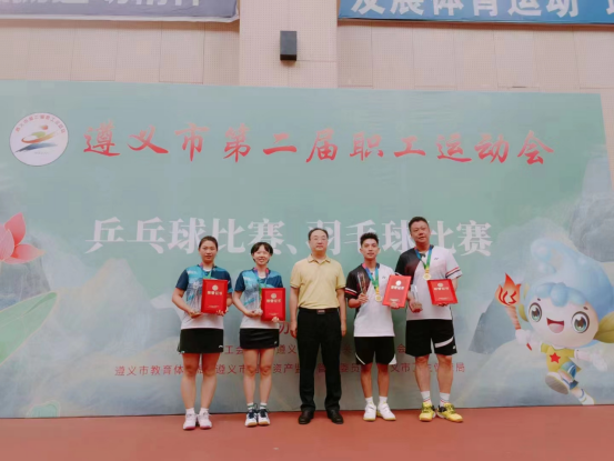 参加运动会的教职工们充分发挥“顽强拼搏”的遵医精神,经过多天的激烈角逐,刘弦、黄雅思老师获企事业组羽毛球比赛女双冠军,赵长阔老师获企事业组围棋比赛观冠军,余良杰、张迎春老师获企事业组乒乓球比赛男双第三名,张迎春老师被评为优秀运动员。(审核:一审龙运友、二是杨清玉、三审李均,撰稿:杨艳,图片:参赛教职工)