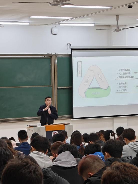 郭宇亮围绕“着眼长远发展的重大决策”“铸就强国建设的坚实基础”“加快强国建设的战略部署”和“充分发挥高校的重要作用”四个方面进行授课,向同学们深入阐述了建设教育强国的重要意义和具体举措。
