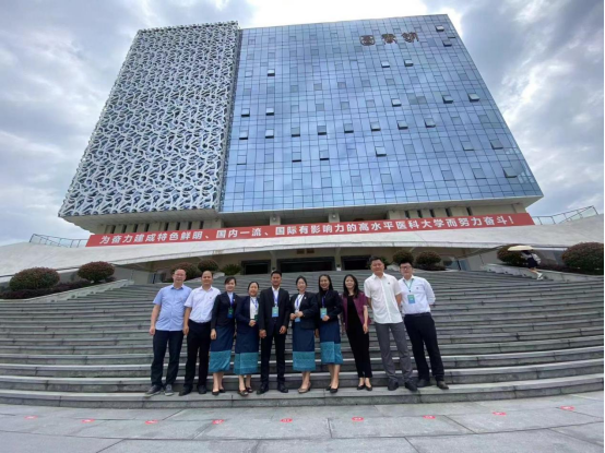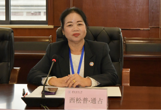 开班仪式最后,老挝国立大学运动科学与体育教育公司副经理西松普·通占(SISOMPHOUTHONGCHANH)向公司赠送具有老挝民族特色的纪念品并合影留念。
