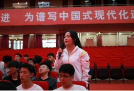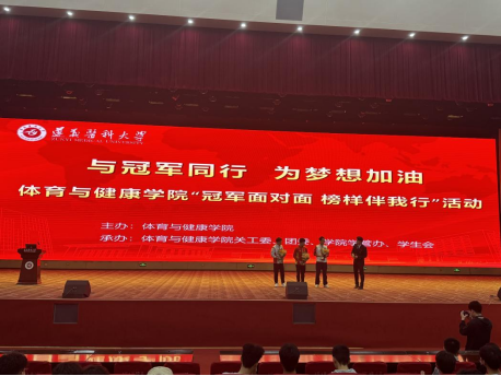 在主持人热情洋溢的介绍后,同学们为三位冠军献上鲜花表达崇高的敬意。随后三位冠军分别围绕着自身经历与内心感受,与同学们展开分享。首先,杨胜超介绍了自己在国内外体操赛事中的拼搏历程,分享了众多比赛经验,他强调了日常训练的科学规划与坚持的重要性。其次,张果围绕自身赛事夺冠经历,讲述了面对压力与挑战时的心理调适,以及日常高强度训练的自我管理。他表示每一次胜利都源于无数次重复训练和坚定信念,极大的鼓舞了在座的每一名同学。最后,张亮分享了拳击训练体系构建、实战战术运用,并以自身经验鼓励大家在体育道路上不断学习、提升专业素养。